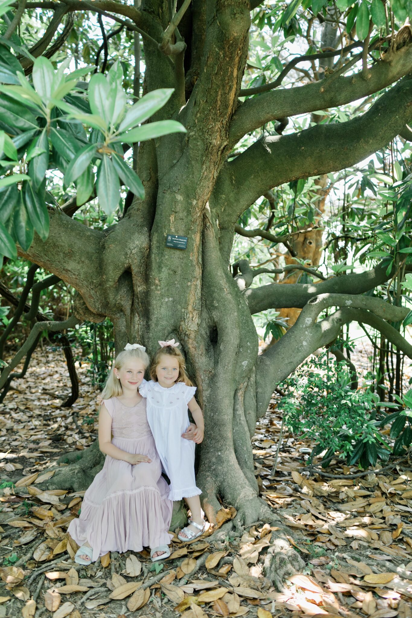 As a bonus if you have young kids, schedule them at the time they’re usually happiest, pack snacks for afterwards, and pick a spot where they can play afterwards. We took ours at Memphis Botanic Garden, and I truly love them so much! The location was so pretty, and the colors worked so well. Leighton and Amelia picked the dresses out, and the girls picked out their own shoes too. I love that they decided to go fancy. How fun! When we all got done taking pictures, we got popsicles at the garden and then played at My Big Backyard for a couple hours. It was perfect. Keep reading for my favorites spots around Memphis for family photos.
